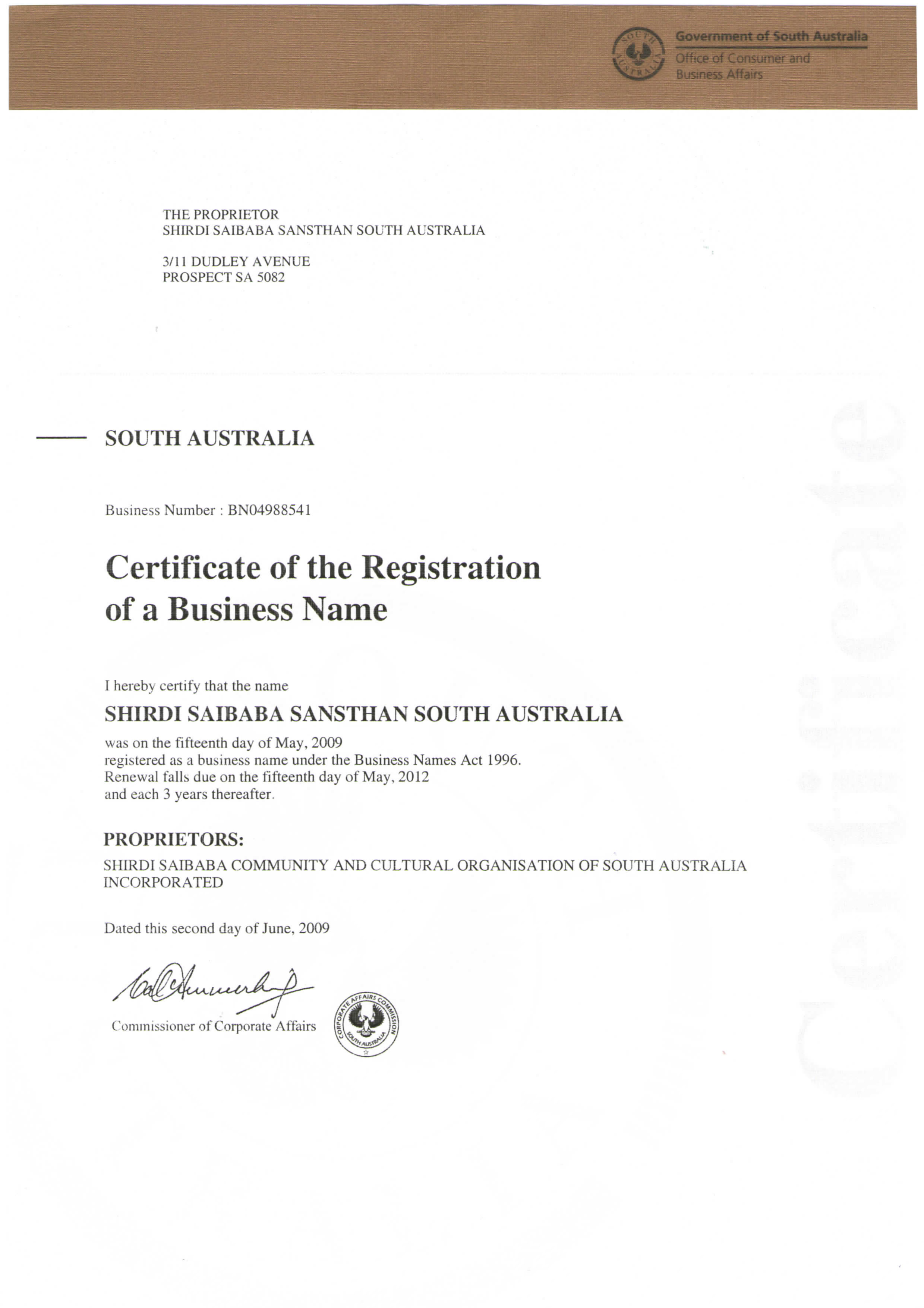 Registration Certificates